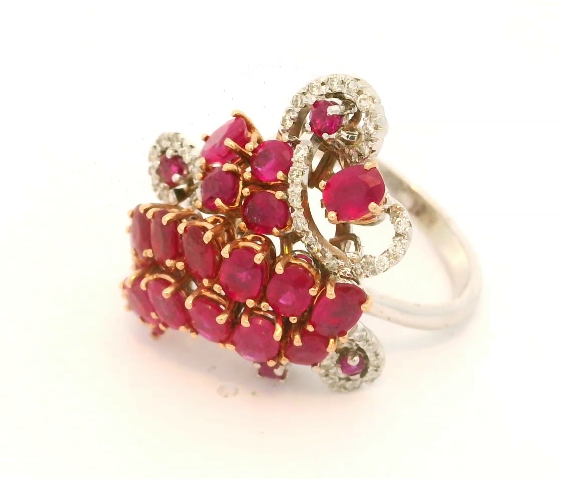 zierlicher Cocktailring mit Rubin und Brillanten