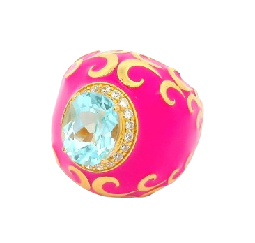 Pink Baby – Ring Silber vergoldet und emailliert mit Topas