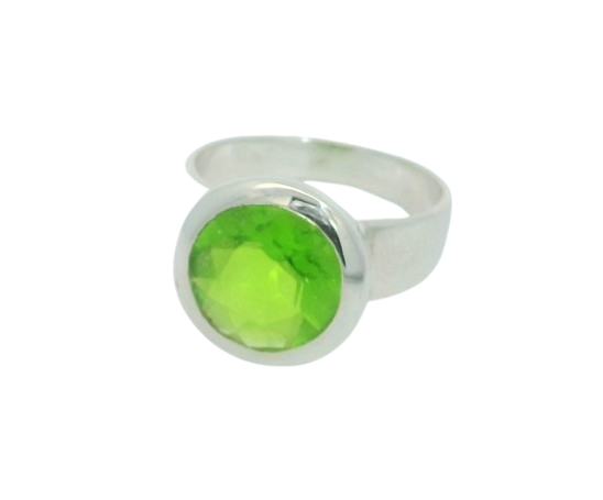 Solitaire Ring aus Silber mit froschgrünem Peridot
